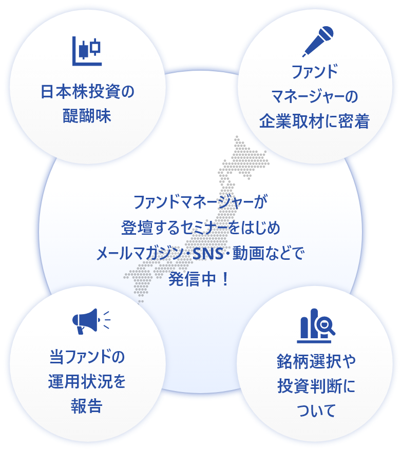 私たちファンドマネージャーが”直接”みなさまに、当ファンドの運用や投資の楽しさについてお伝えいたします。