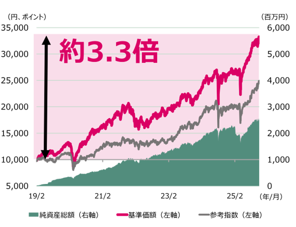 当ファンドのパフォーマンスは、設定来でTOPIX(配当込み)を上回る実績を残しています。